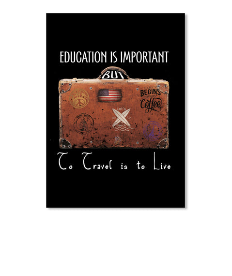 Education is important but to travel is to live is the best gift for that traveler soul that we all know who is proud and love to travel around the globe. No matter if is your dad, mom, brother, sister,uncle, aunt, granddad or grandmom, or any friend or even for yourself. They will love to receive this as a present on their birthday, anniversary, Christmas or for any occasion. It is the perfect design with a travel suitcase on the back, and some stamps, a US Flag, surfboards and with the phrase Education is important but to travel is to live