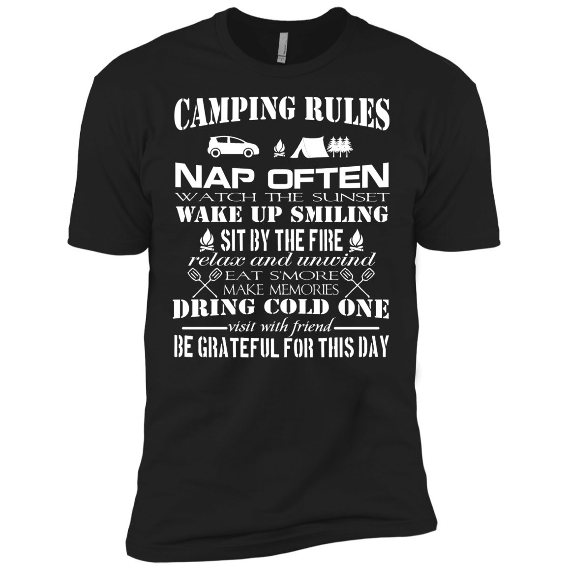 Choose your favorite " Camping Rules Wake Up Smiling Nap Often Relax T-Shirt " from a wide variety of unique high quality designs in various styles, colors and fits. Shop online...