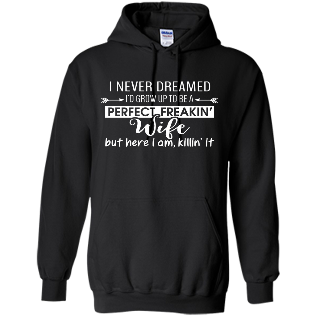 I Never Dreamed I'd Grow Up To Be A Perfect Freakin' Wife 100% Cotton. Imported. Machine wash cold with like colors, dry low heat. Lightweight, Classic fit, Double-needle sleeve and bottom...