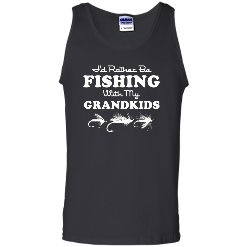 I'd Rather Be Fishing With My Grandkids T-Shirt For Grandpa 100% Cotton. Imported. Machine wash cold with like colors, dry low heat. Lightweight, Classic fit, Double-needle sleeve and bottom hem, Unisex...